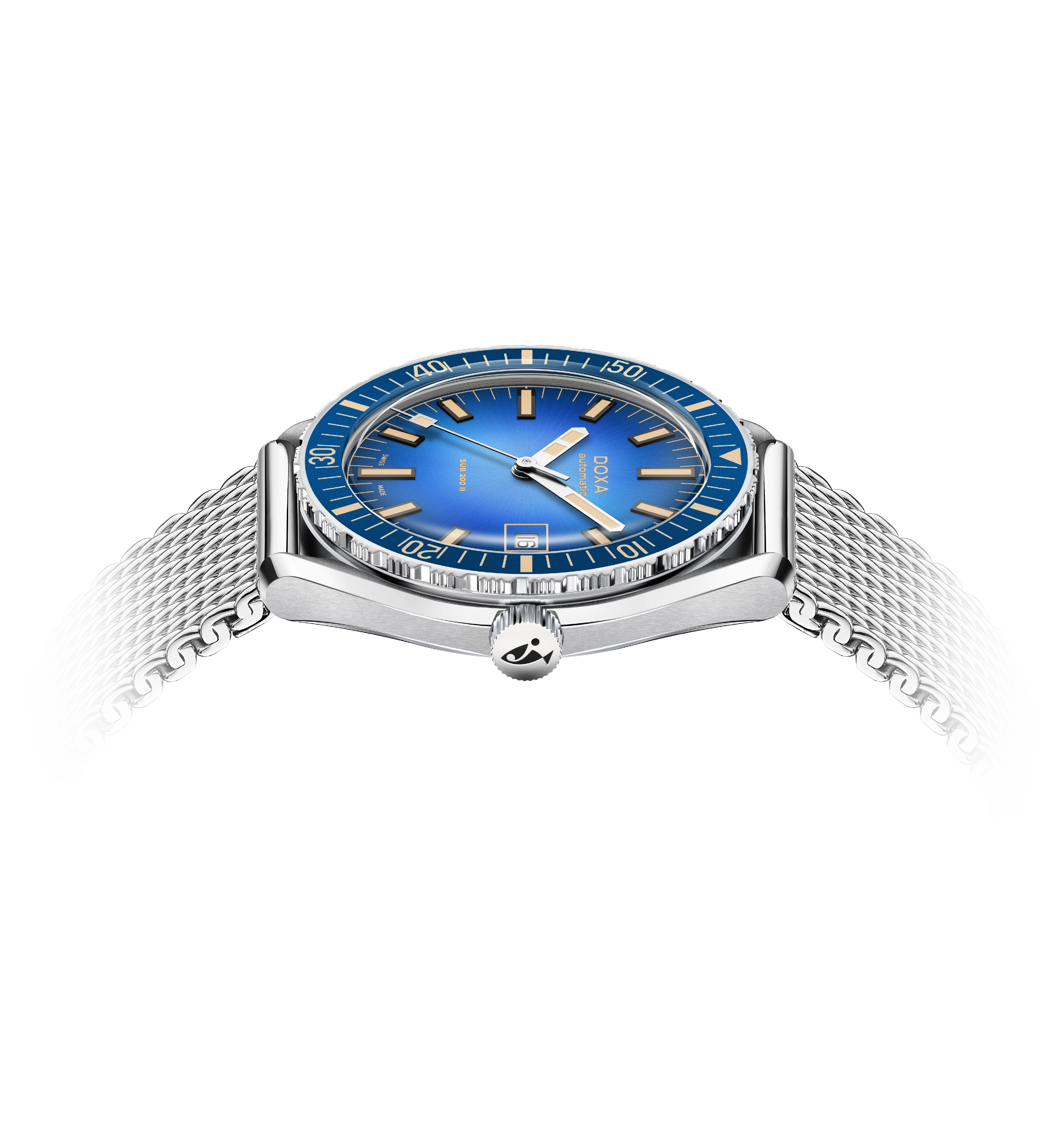 Powered by a Swiss automatic movement with approximately 38 hours of power reserve, the SUB 200 II is available on a stainless steel "Mesh" bracelet or a rubber Dive flex strap, uniting professional performance with urban refinement.